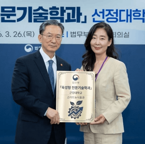 법무부(장관 정성호)는 지난 26일 정부과천청사 대회의실에서 지역 산업의 미래를 선도할 ‘육성형 전문기술학과’로 지정된 전국 16개 전문대학에 현판 및 지정증을 수여했다고 밝혔다.